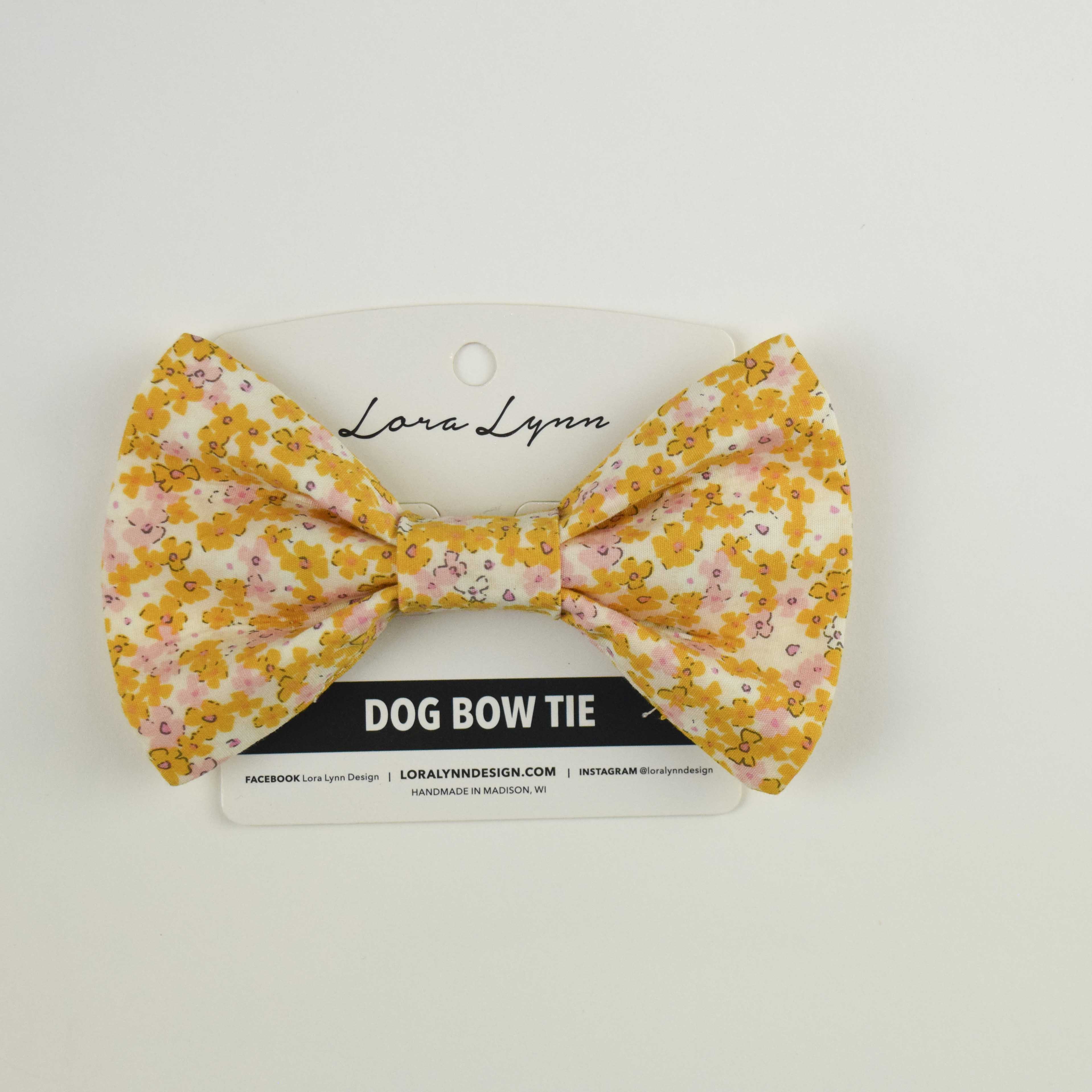 Tiny Pink and Mustard Floral dog bow tie