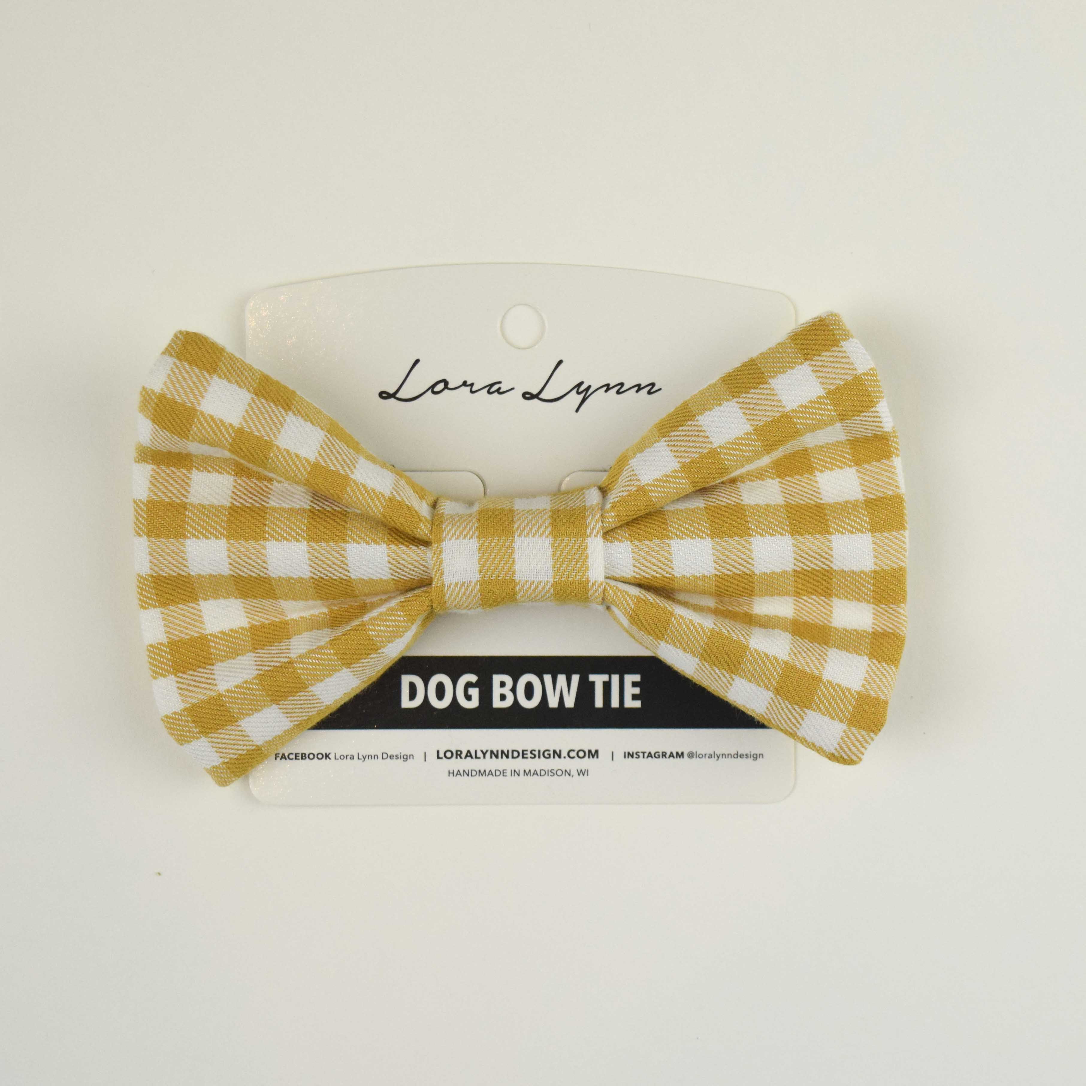 GOLDEN YELLOW AND WHITE CHECK dog bow tie