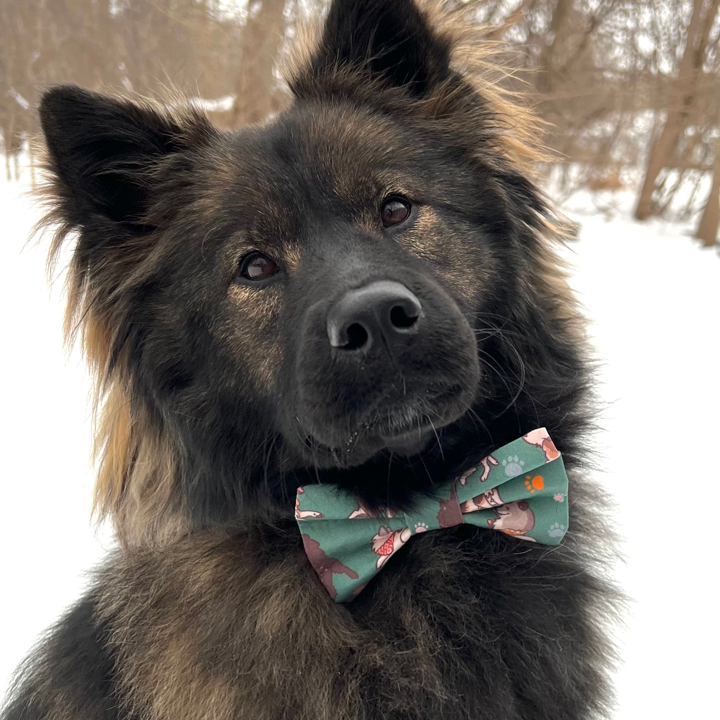 Eurasier in Green dog bow tie